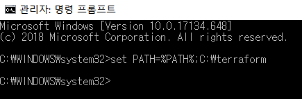 - set PATH=%PATH%;C:\terraform