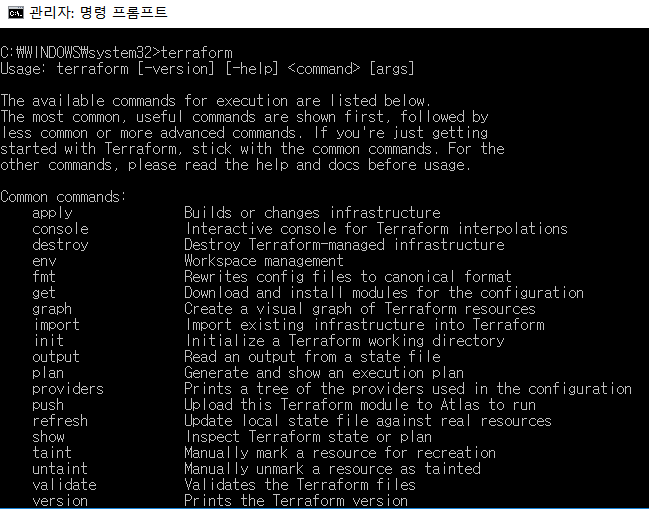 terraform 명령어 실행 시 아래와 같이 나와야 한다