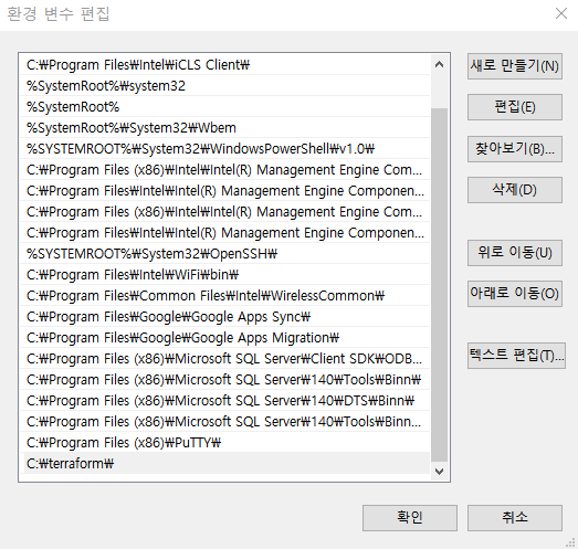 terraform 환경변수 등록 (C:\terraform)