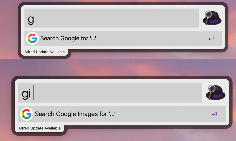 구글이나 구글이미지와 같은 검색지원이 되기 때문에 알프레드를 실행하여 구글에 들어가지 않고도 간편하고 손쉽게 검색 및 이미지를 서칭할 수 있습니다. 만약 알프레드를 사용하지 않았다면 크롬 또는 사파리로 들어가 구글 검색창에 또는 이미지 검색창에 검색을 해야겠죠. 하지만 알프레드는 이런 자질구레한 시간을 단축시켜줍니다.
