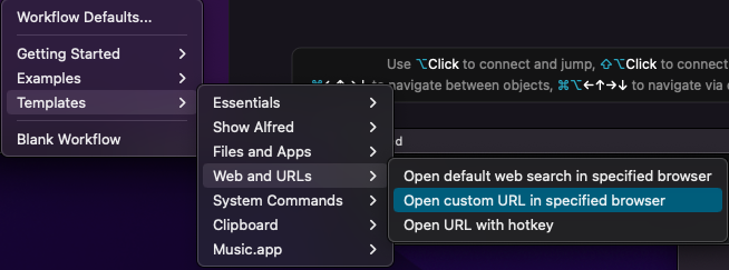 +버튼을 누르고 Tempaltes > Web and URLs > Open custom URL in specified browser