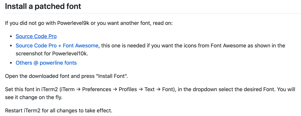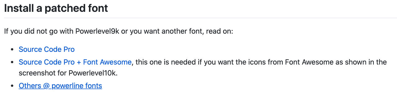 Others @ powerline fonts 여기에 들어간다음에 쭉 내려서 README 부분으로 간다.